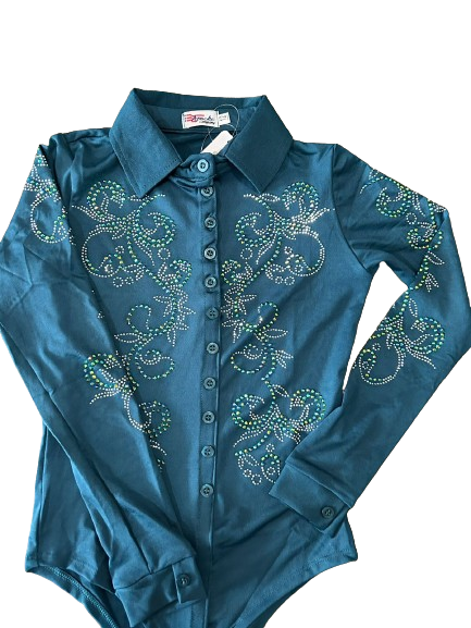 Body Ml Infantil Verde Musgo com Pedraria - Apache