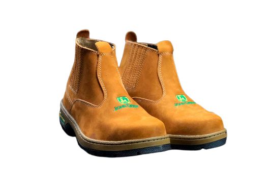 Botina confeccionada em couro nobook, solado em borracha todo costurado, com bordado JOHN DEERE.